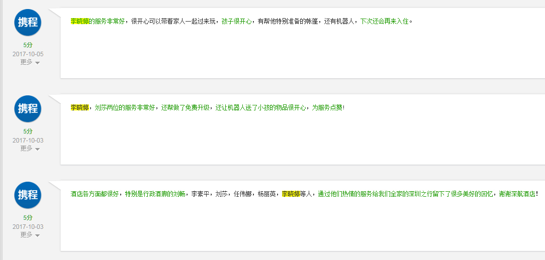 十一假期期间,遇到陈女士带着妈妈到酒廊休息聊天,在沟通时候了解到,因为陈女士平时工作太忙,没时间陪妈妈,这次趁着国庆节特意带妈妈来深圳玩一下。得知这个情况后,我主动给她们介绍了深圳周边的景点和好吃的和适合逛街的地方。根据她们的意向,用纸笔协助做攻略,并且特意介绍了酒店的景点巴士和机场穿梭巴士,让她们的出行更加安全与方便。能够帮到她们,真的很开心。不仅是因为得到了客人的表扬,更是因为这份女儿对妈妈的爱,和妈妈对女儿工作的理解。正是因为这份感动,我们想要坚持下去做到更好。