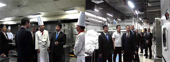 检查中厨房设备及卫生情况                                     检查洗衣房设备运行情况