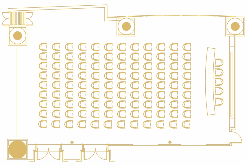 圆桌8桌以内为佳,最多可容纳8桌(10人/桌或12人/桌),自助餐可容纳80人,鸡尾酒会120人,课桌式100人,剧院式140人,U型45人,回型65人。