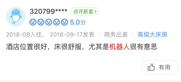 “鹏鹏”在9月份递送物品总计1142次,平均每天递送物品近40次左右。自2018年截止至9月30日,“鹏鹏”已经服务了9869次,总共获得151次实名点赞。24小时全年无休的“鹏鹏”,绝度是酒店的劳模~~~