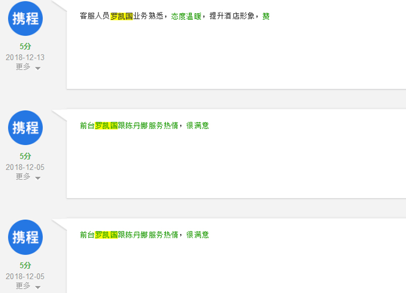 入职不到半年的罗凯国,通过自己的热情服务、细心周到、勤奋学习,在12月份蝉联服务明星人气王称号,连续2个月以优质的服务赢得了宾客的心。在刚刚过去的12月,他一共为宾客们办理了登记入住次数495次,退房次数达934次,工作量再次名列前台员工第一。