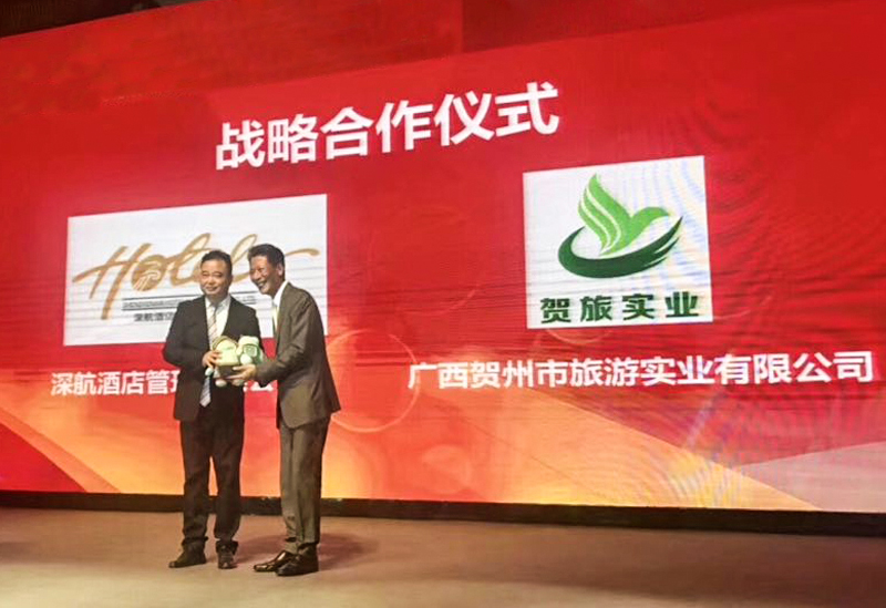 2019年5月18日,深航酒店管理公司与广西贺州旅游实业集团成功签约。本次签约仪式在深圳文博会酒店分会场举行,贺州旅游实业集团有限公司董事长潘达超,总经理黎昌贤、副总经理王园及深航酒店管理公司总经理黄俭、酒店事业部副总经理欧波出席了本次签约仪式。