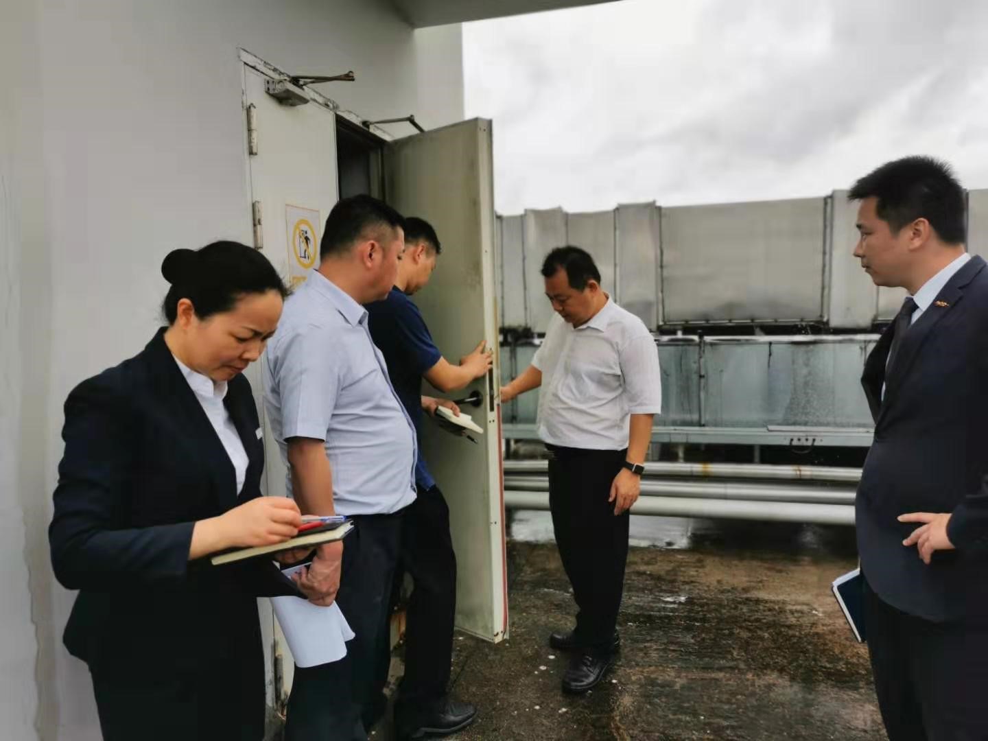 在公寓工程部曾主管的带领解说下,质检领导组顶着风雨对公寓的水暖、空调、消防安全设施设备等进行了视察与指导。期间,两位专业的工程人员进行技术交流,罗汉通经理对公寓的组织管理、安全措施及工程质量表示肯定,双方谈到公寓遗留的工程问题时,柳总监提出:希望公寓和基建工程部积极沟通,及时修复已存在的工程故障,保证公寓客房的正常居住与电梯正常运行使用以及餐厅天花板的美观度,防患于未然,多方面考虑,消除可能存在的隐患问题;维修物资方面,柳总监也做出进一步指导:保证维修耗材的充足供给,并在下期的预算中新增“运营办公费用”项目,以保障后勤方面无后顾之忧。