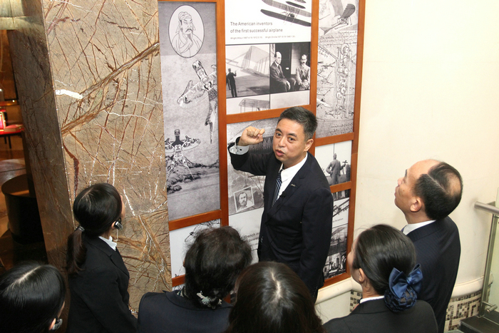 当天下午, 深航酒店管理公司副总经理、深圳深航国际酒店副总经理肖强带领柳州深航鹏逸酒店管理团队一行14人参观了酒店,从1楼大堂至顶层30楼总共历时近2个小时,通过前后台现场讲解使来宾们更加真切地感受到深圳深航国际酒店别具一格的航空文化主题、差异化的服务创新细节以及网络信息技术的大胆探索与应用。