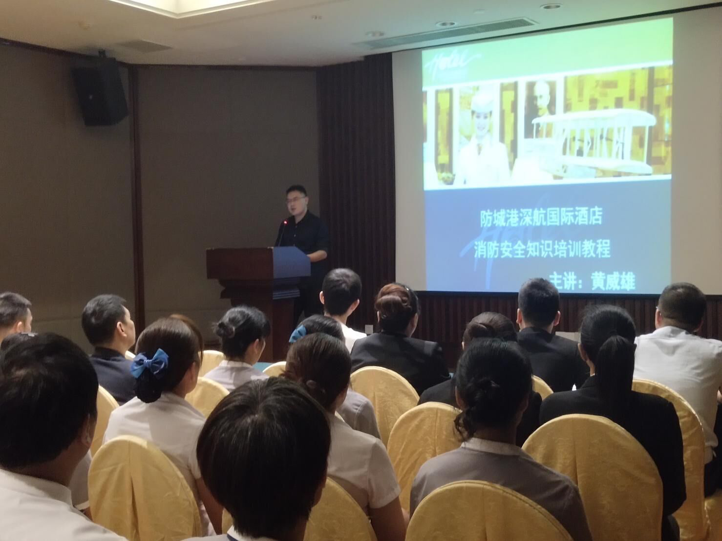 根据酒店业主公司和酒店管理公司下发的关于各子公司(项目)安全生产消防工作专题会议文件指示精神,以及防城港市消防救援支队关于确保东盟“两会”、祖国70周年华诞及环广西自行车赛期间的消防安全要求,为进一步提高酒店全体员工的消防安全意识和义务消防队伍的应急救援能力,确保酒店在国庆节假日期间的安全生产经营,在总经理和业主办的全面部署和指导下,酒店有序地开展了2019秋季消防安全生产月活动。