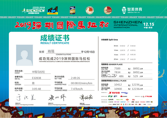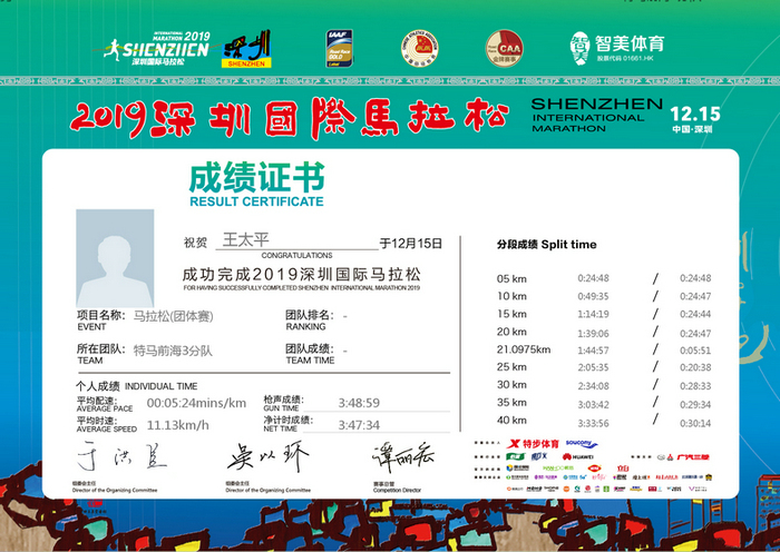 “人生就像马拉松,赢的不是起跑线,而是你最后的坚持!”酒店副总经理肖强跑完深马后感言。