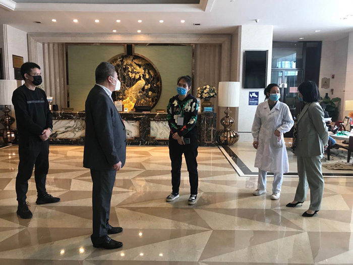 图:酒店总经理与疫情小组负责人对接