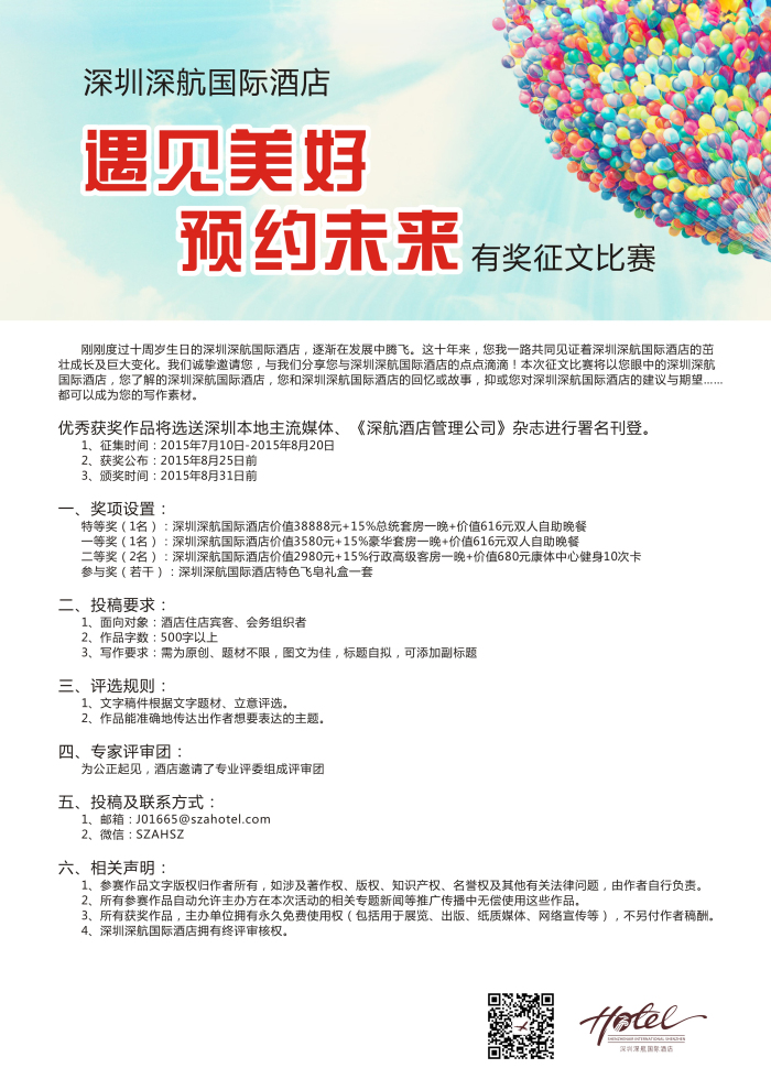 深圳深航国际酒店将有专人与您联系并为您安排奖品事宜