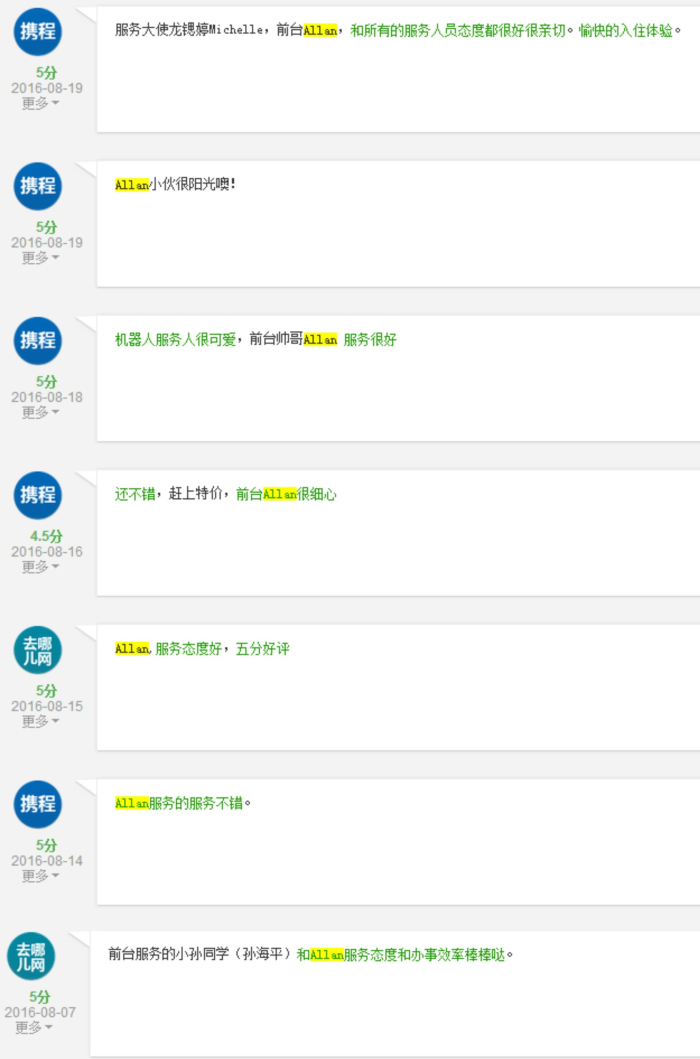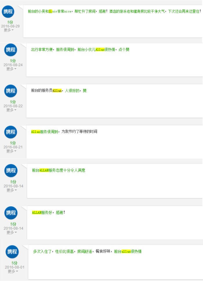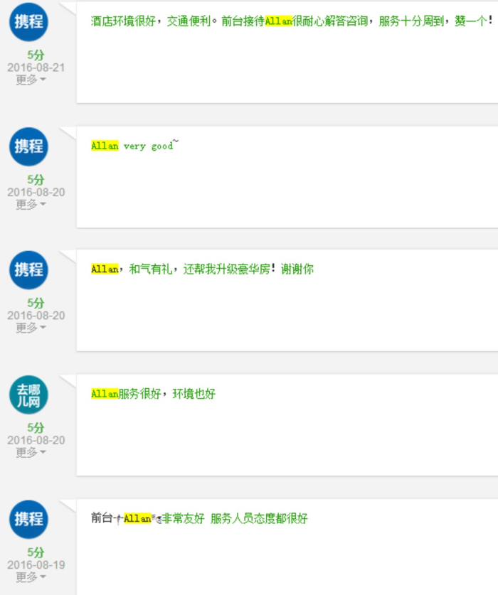 满屏的5分  代表了众多宾客对深圳深航国际酒店及酒店员工的认可。