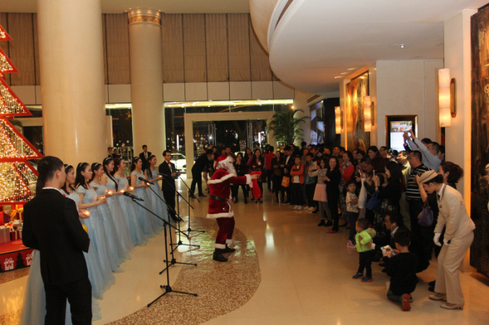 2016年12月24日祥和平安夜,深圳深航国际酒店外围的圣诞灯饰梦幻非凡、大堂大型圣诞场景区、咖啡厅精致圣诞姜饼屋,中外天使圣诗颂唱,无不营造出似梦还真的奇妙感觉,以完美演绎唤醒心中纯真的美好回忆与无限的未来畅想。这一夜,在深圳深航国际酒店浓郁的节日氛围中,宾客们纷纷抛开了短暂的忙碌,置身于无与伦比的庆祝活动中!