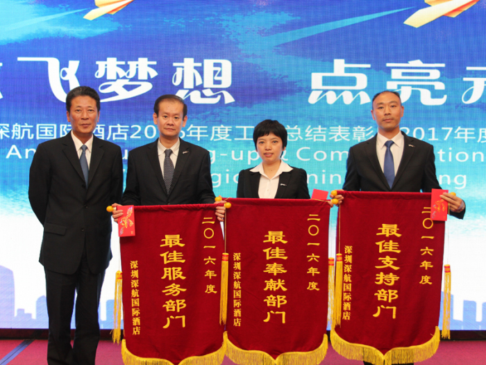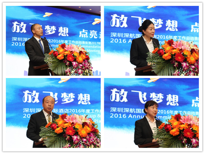 魏总在总结报告中着重谈到:2016年是深圳深航国际酒店运营的第十二年,面临国内、国外经济形式的波动加剧,国内外酒店的竞争持续加剧的格局,并经受了酒店产品的日益老旧,周边环境的严峻挑战,回首过去一年,我们不惧困难,勇敢迎接挑战,终于换来了丰收的喜悦,在2016年度通过团队持续不懈的努力,终于不负众望,全年向业主、宾客和员工交出了一份满意的答卷。2016年实现了全年重大安全事件为零的责任目标,持续在营销举措创新、管理思维创新、服务策划创新、企业文化创新、学习发展创新、品牌宣传创新、 硬件管理创新七个方面, 坚定地推进和落实,实现管理、经营、服务完成良好,并保持在同行业中的竞争地位及排名。全面总结了成功的经验、同时找到了存在的问题和不足。